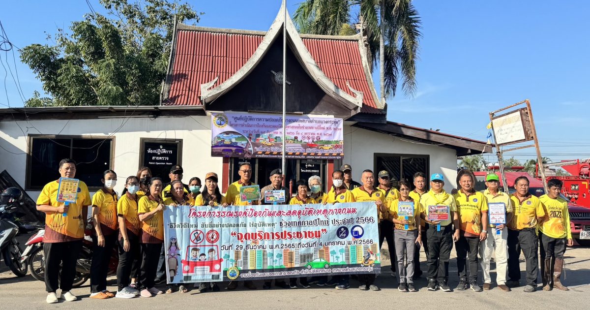 วันที่ (29 ธ.ค.66) เวลา 08.30 น. อำนวยการโดย พ.ต.อ.สุเมธ สุนะ ผกก.สภ.บางกระทุ่ม, พ.ต.ท.ทวิช ถึงจันทร์ รอง ผกก.ป.สภ.บางกระทุ่ม มอบหมายให้ พ.ต.ต.ชำนาญ แผลงดี สวป.สภ.บางกระทุ่ม ร่วมพิธีเปิด”โครงการรณรงค์ป้องกันและลดอุบัติเหตุทางถนน” ช่วงเทศกาลปีใหม่ 2567 โดยร่วมเจ้าหน้าที่เทศบาลตำบลบางกระทุ่ม ณ บริเวณตลาดสดเทศบาลบางกระทุ่ม