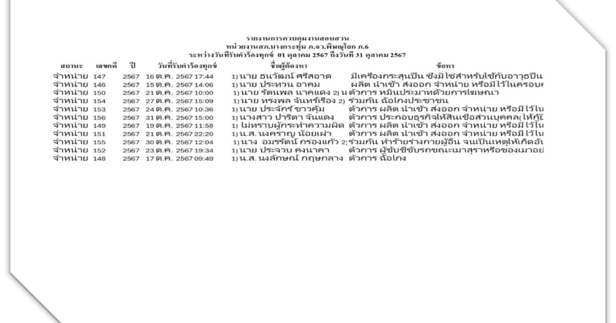 ประชาสัมพันธ์ 1 พฤศจิกายน 2567 by admin / ข่าวประชาสัมพันธ์,ประชาสัมพันธ์ งาน สอบสวน ช่วงวันที่ 1 ต.ค. 2567 ถึง 31 ต.ค. 2567 พนักงานสอบสวนได้รับสำนวนคดีอาญาไว้ทำการสอบสวน 11 คดี สอบสวนเสร็จสิ้นแล้ว 11 คดี คงเหลือและอยู่ระหว่างการสอบสวน 0 คดี และ พนักงานสอบสวนได้รับสำนวนคดีจารจรไว้ทำการสอบสวน 0 คดี สอบสวนเสร็จสิ้นแล้ว 0 คดี คงเหลือและอยู่ระหว่างการสอบสวน 0 คดี