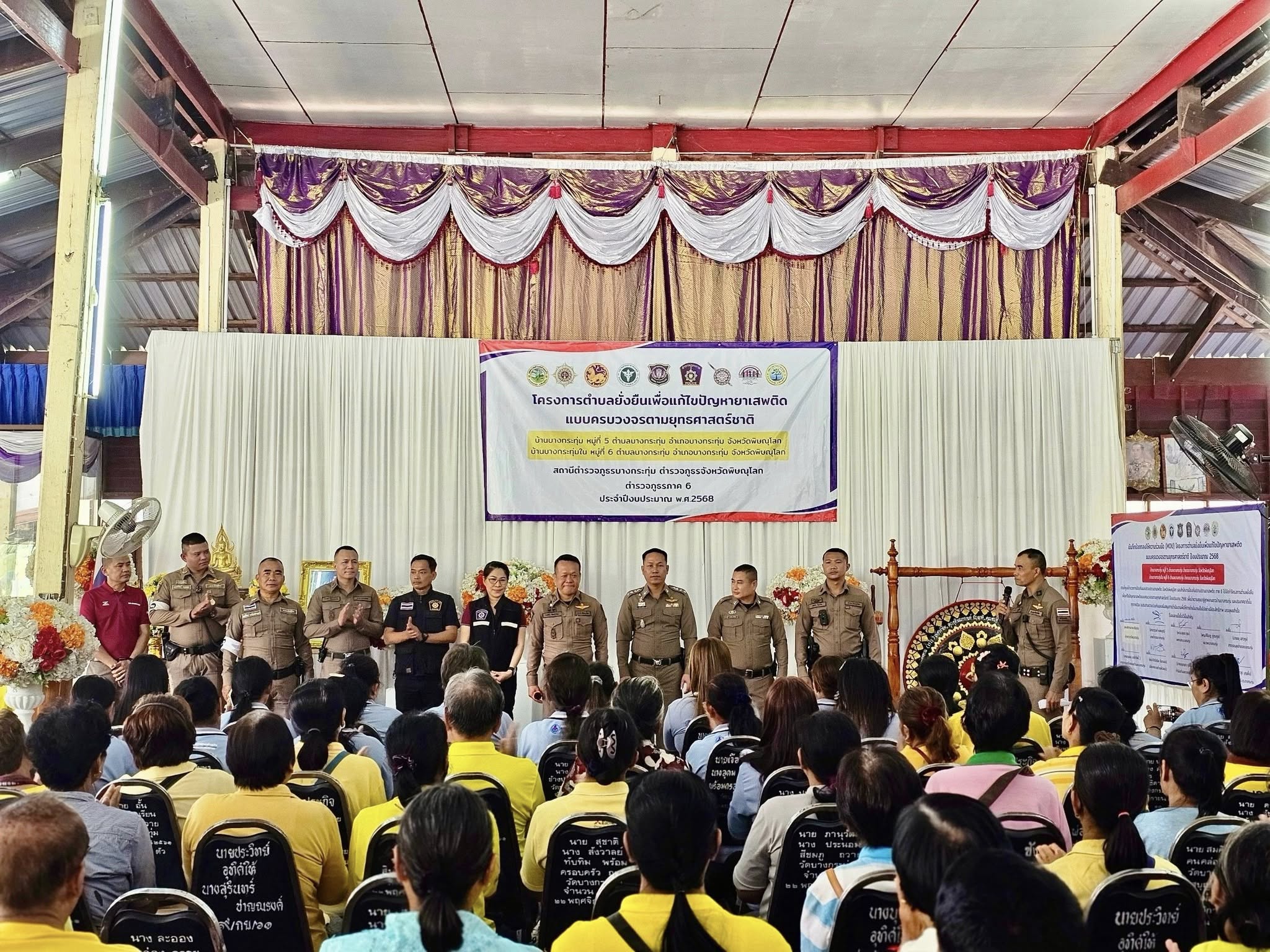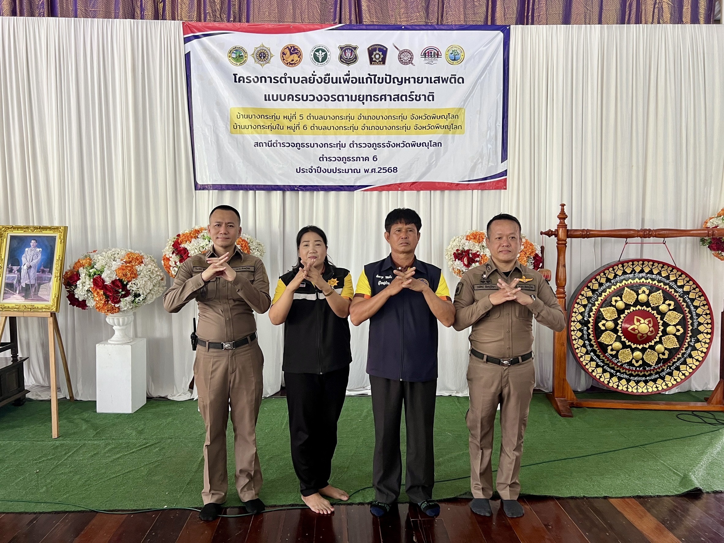 และเจ้าหน้าที่ตำรวจตำบลบำบัดอย่างยั่งยืนฯ สภ.บางกระทุ่ม ร่วมดำเนินการจัดพิธีเปิดโครงการดำเนินงานตำบลยั่งยืนเพื่อแก้ไขปัญหายาเสพติด แบบครบวงจรตามยุทธศาสตร์ชาติ ปีงบประมาณ พ.ศ.2568