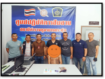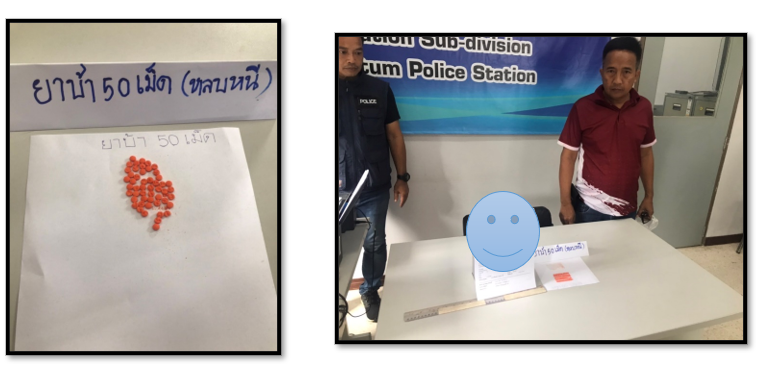 เจ้าหน้าที่ชุดจับกุม นำโดย โดย พ.ต.ท.ภูวเนศวร์ ภูวเนศวร์บดี รอง ผกก.สส.สภ.บางกระทุ่ม พร้อมด้วยชุดสืบสวน ได้จับกุมตัว พร้อมด้วยของกลางยาเสพติดให้โทษประเภท1 (ยาบ้า) จำนวน 59 เม็ด